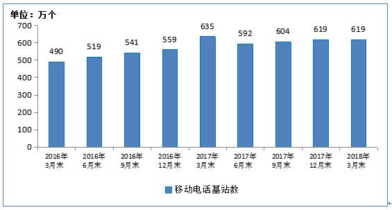 圖11 2016-2018年3月移動(dòng)電話基站數(shù)發(fā)展情況