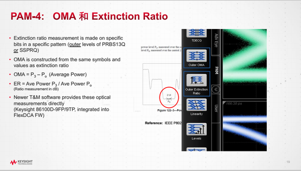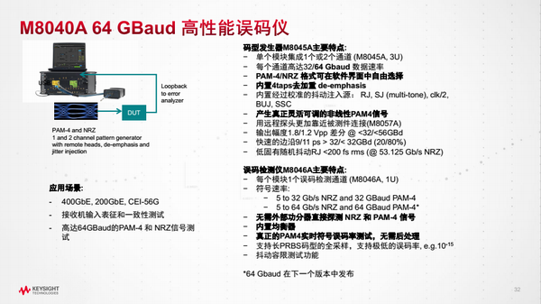 是德科技的測試設備及方案一直以來受到市場的極高肯定,其設備與方案完美配合,為產(chǎn)品生產(chǎn)保駕護航?,F(xiàn)場,是德科技朱老師介紹了是德科技針對PAM-4的測試方案中關于發(fā)射機和接收機的測試方案。在講到接收機的測試方案相關時,朱老師表示:只有真實PAM-4誤碼分析儀才能提供PAM-4誤符號率的實時測量,而不需要通過傳統(tǒng)誤碼探 測器分多個閾值測試比特誤碼率基礎上,再通過后信號處理來計算出錯符號率,上述方法不適合于突發(fā)誤碼的PAM4信號分析。只有真PAM4誤碼探測器才能探測長碼型(PRBS31或 QPRBS-13)低至10-15或者甚至無誤碼率,任何基于后處理的非實時PAM4探測機制都不會滿足未來標準一致性測試需求。