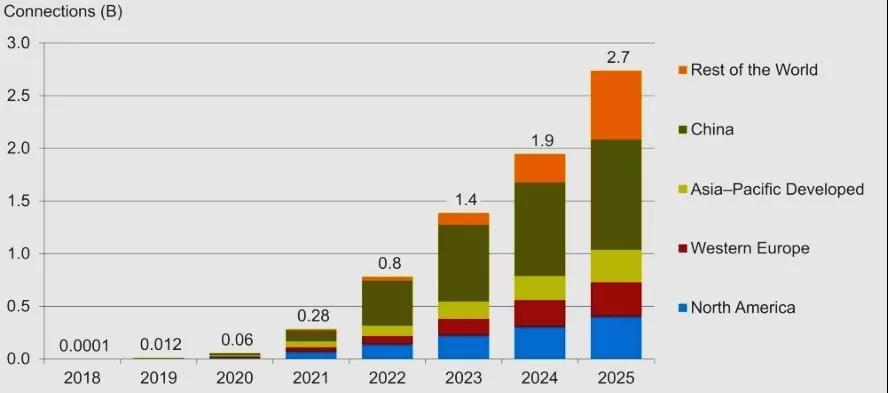 邊緣計(jì)算源于IOT物聯(lián)網(wǎng)接入的發(fā)展,5G的技術(shù)是物聯(lián)網(wǎng)發(fā)展的推手,從CCS Insight Market Forecast報(bào)告中可以看到,自2020年起,物聯(lián)網(wǎng)的終端接入將呈現(xiàn)幾何級(jí)的上升。而中國(guó)的市場(chǎng)是全球最大的單一市場(chǎng)。