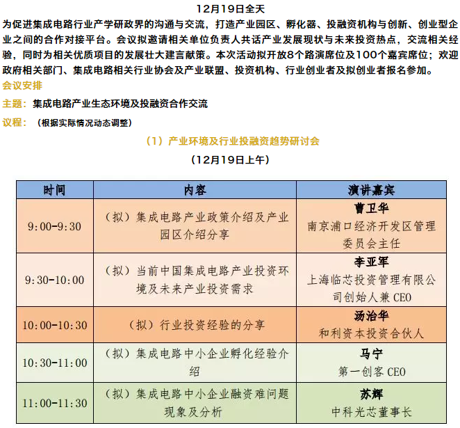 重點面向集成電路產(chǎn)業(yè)鏈上下游領(lǐng)域的優(yōu)質(zhì)成長企業(yè)及優(yōu)秀創(chuàng)業(yè)團隊,征集對接會分會場路演項目席位。同時,本次活動為會場外領(lǐng)域內(nèi)代表性單位提供免費產(chǎn)品展示服務(wù)。