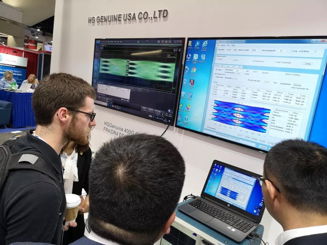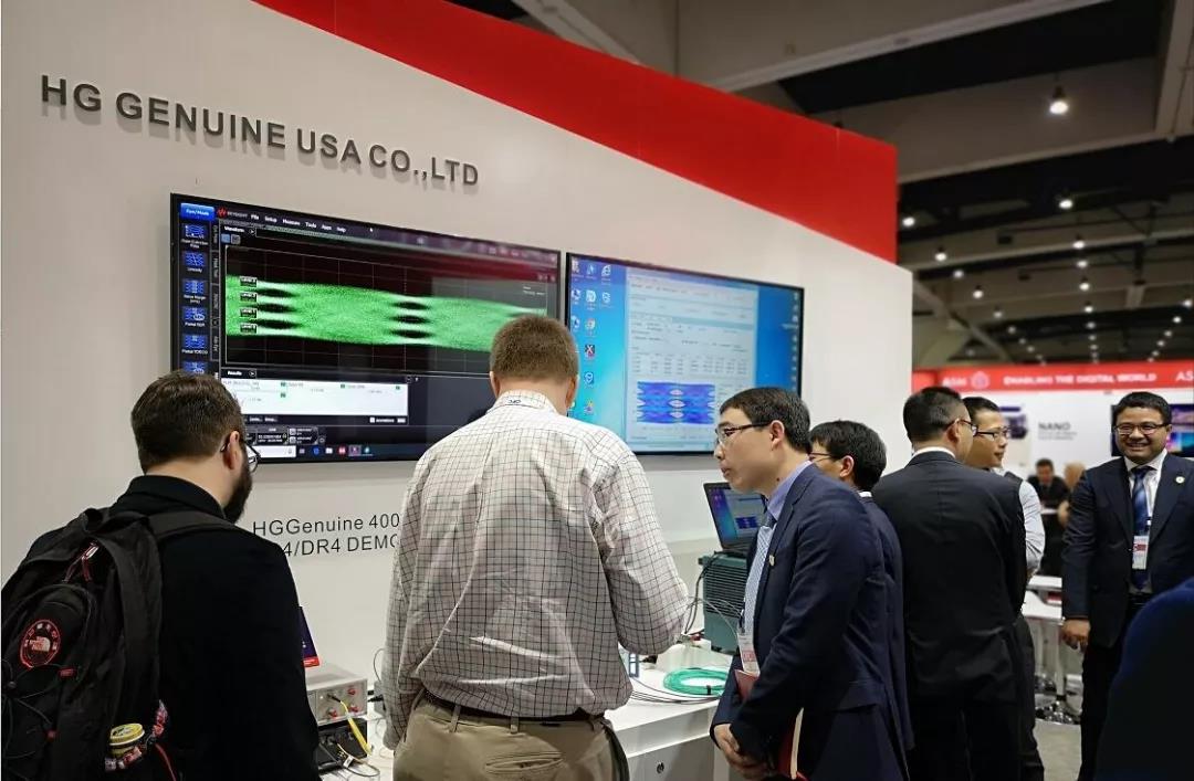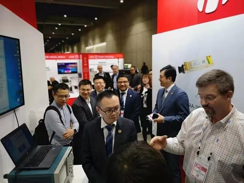在OFC2019現(xiàn)場,筆者看到,以寶石紅為主色調(diào)的華工正源展臺人流如織,北美主要互聯(lián)網(wǎng)廠商、設(shè)備商紛紛駐足正源展臺進(jìn)行技術(shù)交流。