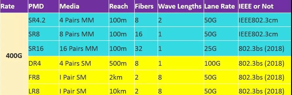ICCSZ訊 IEEE根據(jù)數(shù)據(jù)中心400G不同的距離需求,發(fā)布了一系列的以太網(wǎng)標(biāo)準(zhǔn),這些標(biāo)準(zhǔn)看似繁雜實(shí)際上存在著一些共同的規(guī)律: SR代表傳輸距離70、100或150米,采用多模光纖;DR代表傳輸距離500米,采用單模光纖;FR代表傳輸距離2000米,采用單模光纖;LR代表代表傳輸距離10km,采用單模光纖;ER代表傳輸距離40km,采用單模光纖。SR和DR后面的數(shù)字代表光纖對數(shù)。IEEE 802.3bs標(biāo)準(zhǔn)已經(jīng)于2018年發(fā)布,IEEE 802.3cm標(biāo)準(zhǔn)正在制訂中,預(yù)計(jì)2019年底能被正式批準(zhǔn)。除了IEEE已經(jīng)完成及正在進(jìn)行的標(biāo)準(zhǔn),如果加上MSA的400G應(yīng)用,實(shí)際上可以參考的400G應(yīng)用不下10種。對于數(shù)據(jù)中心的用戶來說,對于如此繁多的應(yīng)用感覺無從下手。來自羅森伯格的分析認(rèn)為,其實(shí)只需重點(diǎn)關(guān)注其中的4個(gè)模型。