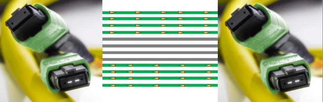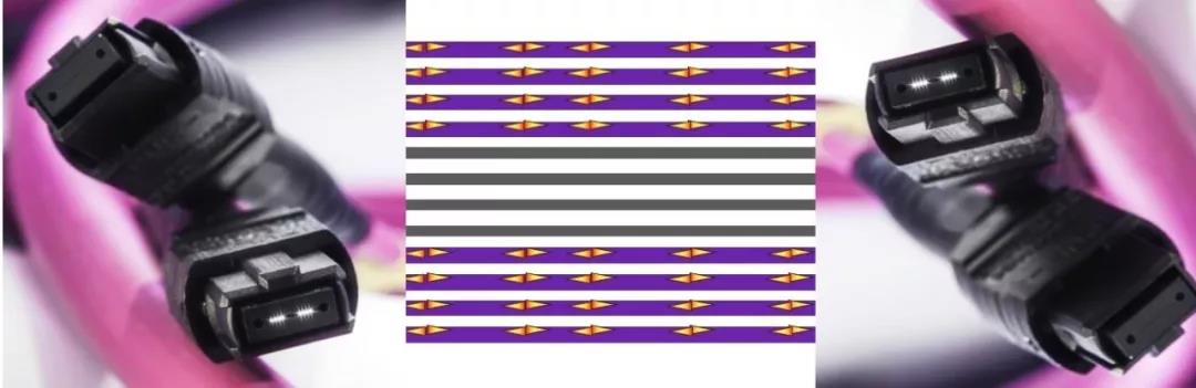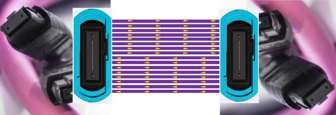采用多模光纖單波長單向8通道,每通道傳50G。接口采用16芯專用MPO或采用24芯兩排MPO接口。多模光纖可以采用OM3,OM4及OM5,支持的長度分別為70米,100米,150米。這種應(yīng)用的特點(diǎn)是:每個(gè)接口需要16芯光纖支持光纖量大,而單波長應(yīng)用使得收發(fā)器成本低。