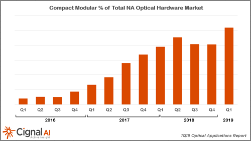 ICCSZ訊(編譯:Nina)市場研究公司Cignal AI最新的光學(xué)應(yīng)用報(bào)告顯示,緊湊型模塊化光學(xué)硬件在網(wǎng)絡(luò)中的應(yīng)用越來越廣,推動(dòng)該板塊市場2019年第一季度的收入增長。