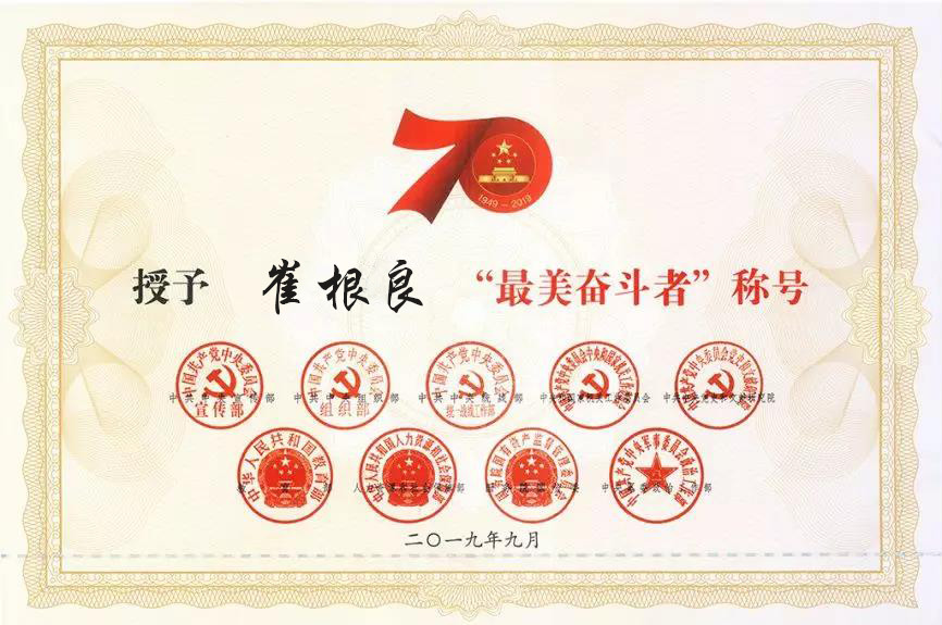 2019年9月25日上午,“最美奮斗者”表彰大會在人民大會堂隆重舉行,中共中央政治局常委、中央書記處書記王滬寧會見了受表彰人員和親屬代表。亨通集團黨委書記、董事局主席崔根良,作為新中國成立以來涌現(xiàn)的英雄模范,受邀出席“最美奮斗者”表彰大會,并被授予“最美奮斗者”稱號,接受頒發(fā)的“最美奮斗者”證書和獎?wù)隆?