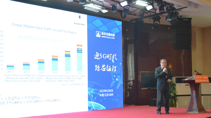 訊石信息咨詢董事長石明先生為大會致辭,他表示行業(yè)同仁對2020的期待,對朋友相聚的熱情,對芯片國產(chǎn)化有旺盛的期望。回顧2019年是個多變之年,技術(shù)自主、芯片國產(chǎn)化的重要及必然性更加凸顯。從訊石指數(shù)反饋來看,2019年上半年通信市場逐步止跌攀升,下半年受5G大市的追捧,到年底前為止已經(jīng)反超到正14%!2020市場會如何?基本面上是有至少5-10%增長空間。