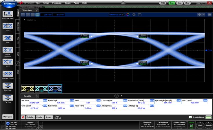 NRZ在28Gbps下眼圖測試結(jié)果