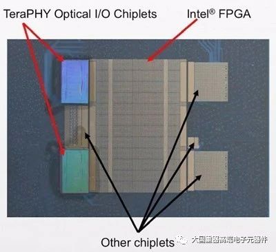 在PIPES項(xiàng)目的第一階段,Ayar的TeraPHY小芯片與采用AIB接口和Intel EMIB硅橋封裝的Intel FPGA共同封裝,成功地用高效的光信號(hào)接口取代了先進(jìn)現(xiàn)場(chǎng)可編程門陣列(FPGA)的傳統(tǒng)電輸入/輸出(I/O)——電串行器/解串器(SERDES)小芯片。這些SERDES小芯片可在需要快速數(shù)據(jù)移動(dòng)時(shí)補(bǔ)償有限的I/O,從而實(shí)現(xiàn)高速通信和其他功能。