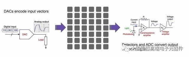 圖 Lightmatter的光學(xué)計算陣列由DAC和ADC塊組成,用于與其他數(shù)字電路相接