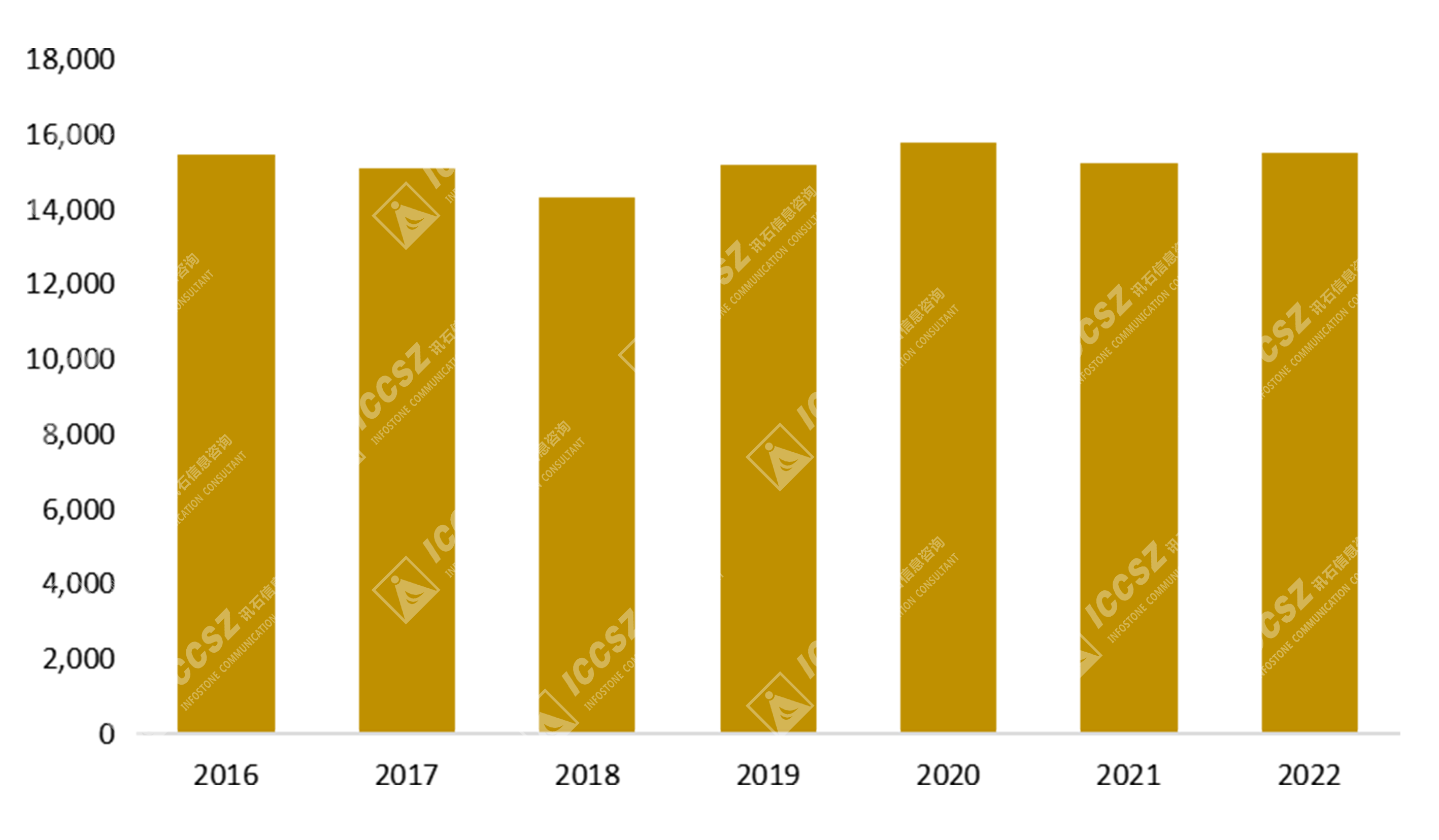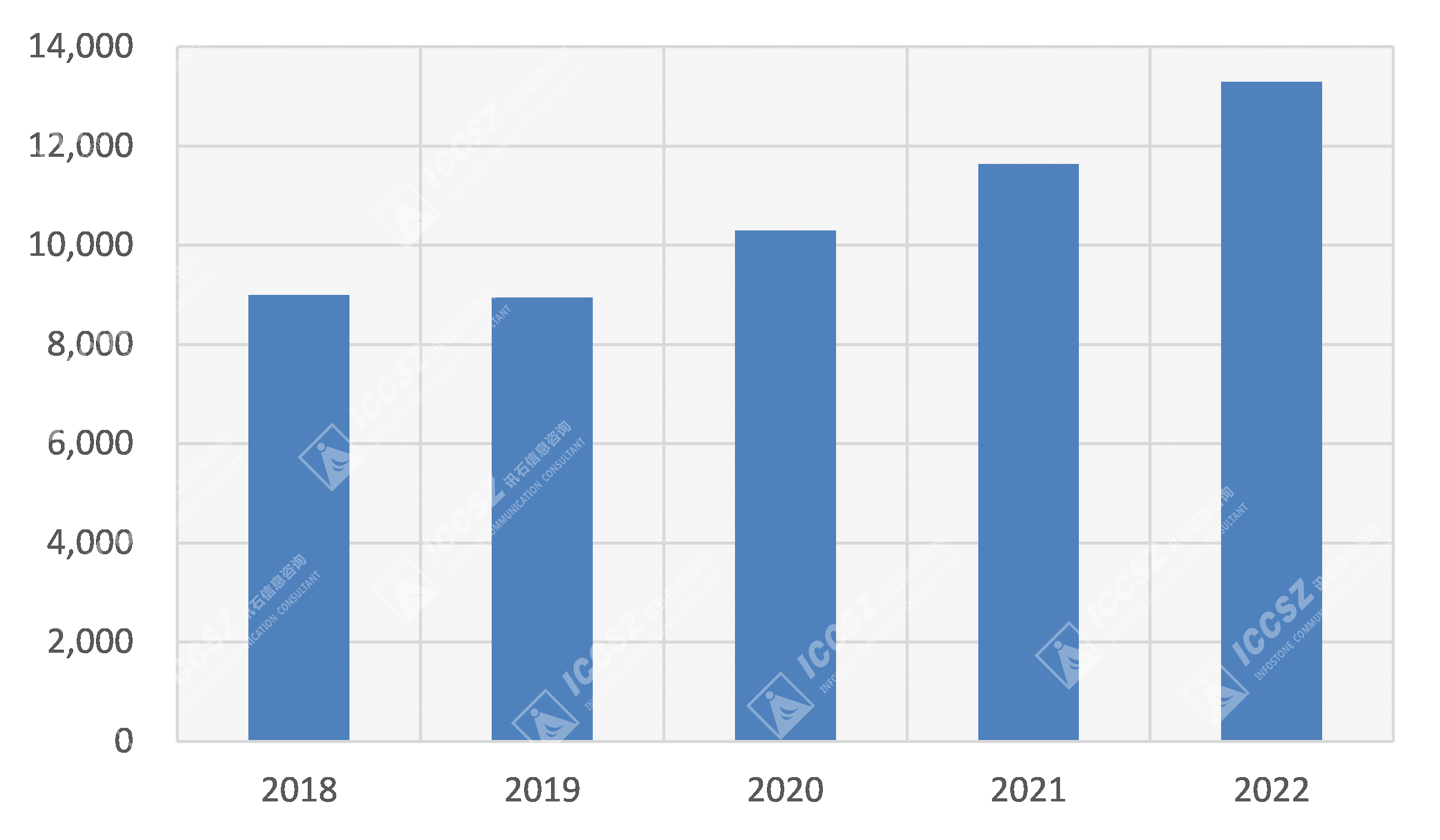 7.光纖光纜市場方面,在5G建設、光纖寬帶升級和云服務需求增長的推動下,全球光纖光纜需求量增長。數(shù)據(jù)顯示,2022年,全球光纖光纜需求量依然增長,規(guī)模達到5.23億芯公里,比2021年增長4.77%。