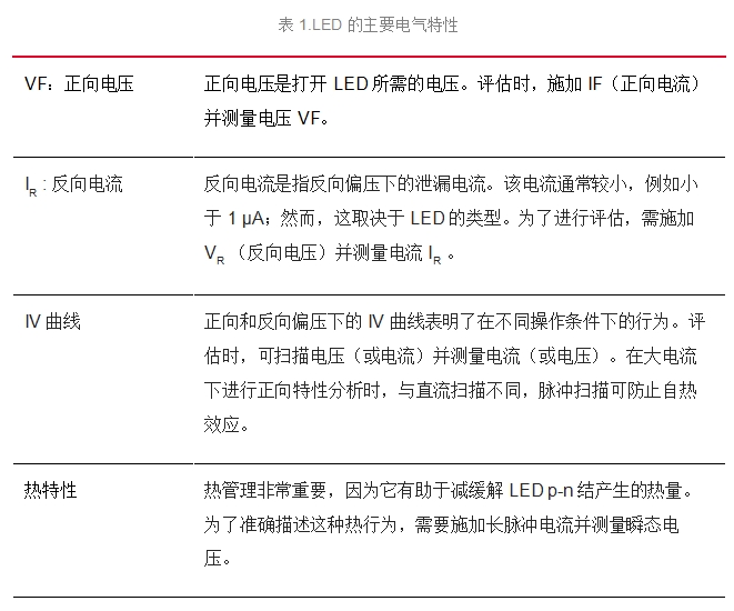 LED 的主要電氣特性