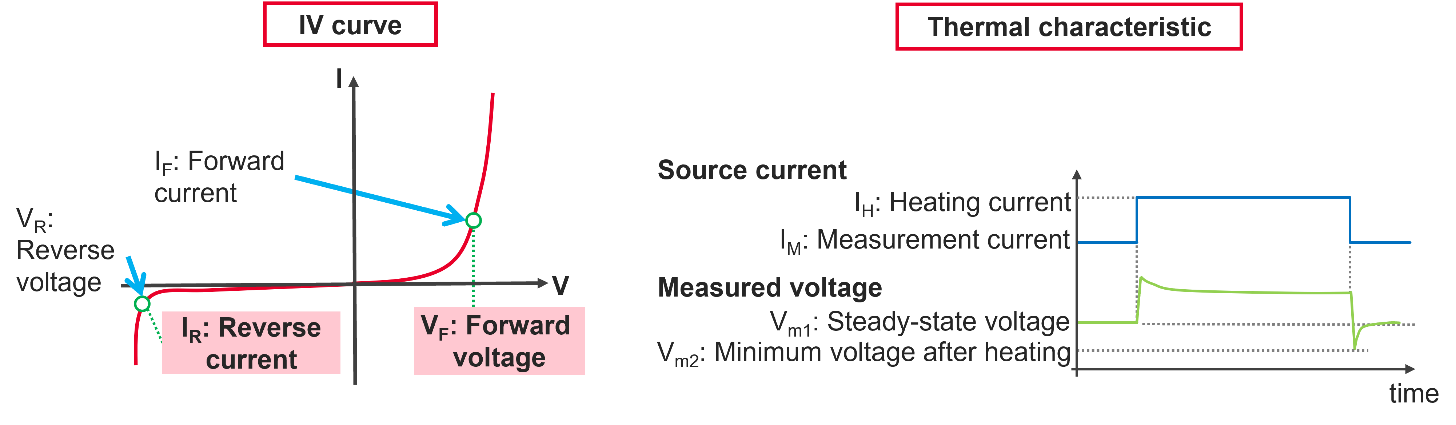 在熱測試中,速度更快的數(shù)字化儀和靈活的觸發(fā)系統(tǒng)可以捕捉熱引起的瞬態(tài),從根本上消除器件自熱或噪聲問題引起的任何測量誤差。圖 4 是正向和反向偏置電壓的 IV 曲線掃描示例。圖 5 顯示了脈沖瞬態(tài)響應(yīng)方法,以最大限度地減少器件自熱效應(yīng)。