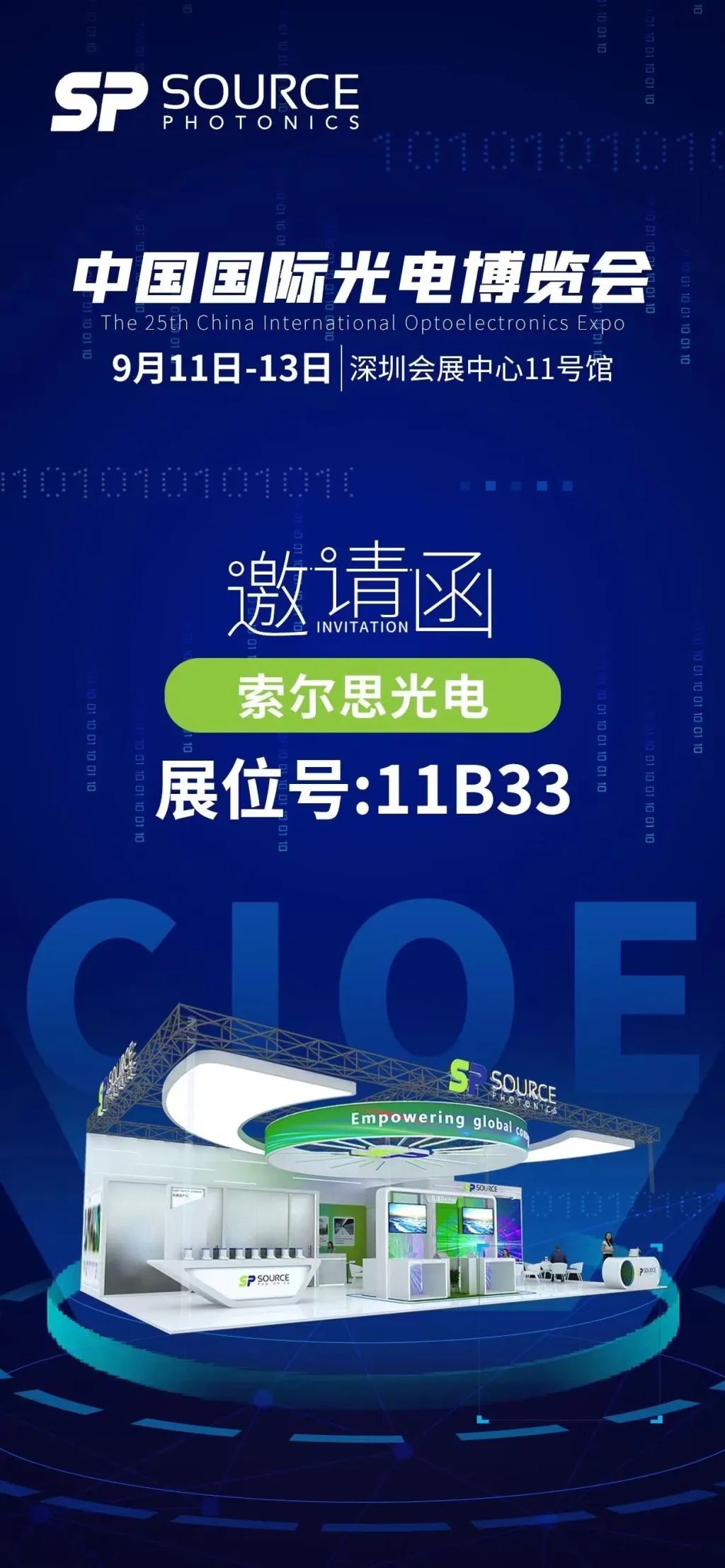 ICC訊 CIOE 2024將于9月11-13日在深圳國際會展中心(寶安新館)舉辦,屆時索爾思光電展示最新的光芯片和各系列光電模塊產(chǎn)品和技術:400G/800G 液冷光模塊、800G FR4/LR4 OSFP/ QSFP-DD、50G PON OLT SFP56,誠邀蒞臨展位號11B33參觀交流!