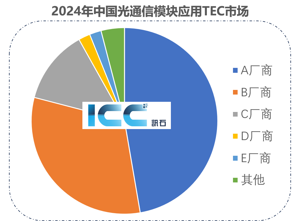 總體而言,在光通信市場中作為與EML高度配套的關(guān)鍵元器件,TEC將繼續(xù)受益于EML應(yīng)用范圍擴(kuò)大和高速光模塊整體市場發(fā)展。除了數(shù)據(jù)通信市場,電信市場也有逐步回溫的跡象,據(jù)ICC訊石了解,2024年我國PON光接入市場在超過2000萬套FTTR增量的推動下產(chǎn)生超過2億只BOSA器件的需求。PON應(yīng)用1577nm TOSA使用TEC控制波長偏移。TEC還是探測器性能優(yōu)化的重要工具。例如,紅外探測器對溫度變化十分敏感,環(huán)境熱噪聲會影響信號質(zhì)量。TEC能通過維持穩(wěn)定的低溫工作環(huán)境,降低噪聲水平,大幅提升探測靈敏度。光學(xué)探測器和高能物理和輻射探測也同樣受益于TEC的溫控功能。
