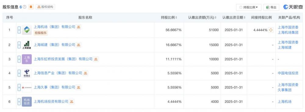 圖:上海低空經(jīng)濟產(chǎn)業(yè)發(fā)展有限公司股東構成情況。