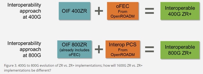 圖 3. 400G 到 800G 時(shí)代 ZR 與 ZR + 實(shí)現(xiàn)方式的演進(jìn);1600G ZR 與 ZR + 的實(shí)現(xiàn)方式會(huì)有何不同?