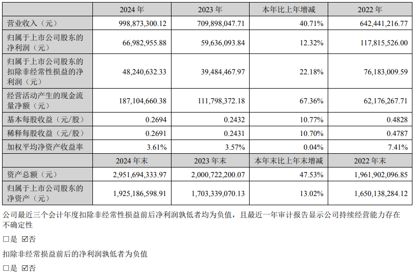 3月29日,珠海光庫科技股份有限公司(簡稱“光庫科技”或“公司”,300620)發(fā)布2024年年度報告。2024年,光庫科技實現(xiàn)營業(yè)收入9.99億元,同比增長40.71%,主要是本報告期公司積極拓展國內(nèi)外市場、開發(fā)新客戶,收購拜安實業(yè) 52%股權(quán)所致;凈利潤 7248.87萬元,同比增長21.55%;歸屬于上市公司股東的凈利潤6698.3萬元,同比增長12.32%,主要是隨著銷售收入增長,凈利潤相應(yīng)增長所致。