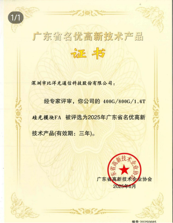ICC訊 近日,ICC訊石借CUBE-Net 2025在北京舉辦之機(jī),走訪了在安徽合肥的比洋通信,拜訪了比洋通信董事長(zhǎng)陳享郭先生,以及比洋通信總監(jiān)汪洋。陳總、汪總向ICC訊石詳細(xì)介紹了比洋通信近些年來(lái)在安徽合肥巢湖經(jīng)濟(jì)開(kāi)發(fā)區(qū)的發(fā)展情況,同時(shí)恰逢近期2025 年廣東省名優(yōu)高新技術(shù)產(chǎn)品評(píng)選結(jié)果揭曉,比洋通信憑借強(qiáng)大的自主研發(fā)實(shí)力,其自主打造的 800G/1.6T 高速光模塊 MT-mini MT 和 400G/800G/1.6T 硅光模塊 FA 兩款產(chǎn)品,憑借領(lǐng)先行業(yè)的技術(shù)水平與卓越穩(wěn)定的產(chǎn)品性能,成功斬獲此項(xiàng)榮譽(yù)。