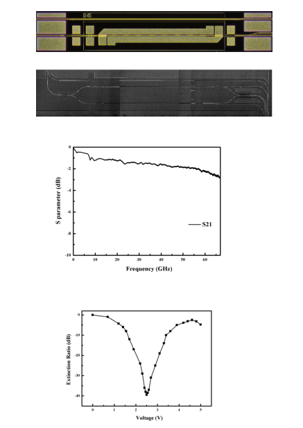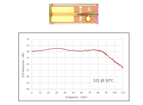 InP-MZM/IQ-MZI芯片:高電光帶寬+優(yōu)驅(qū)動特性,強化信號調(diào)制性能:采用MMI+ MZM光學(xué)波導(dǎo)及CL-TWE電極方案,結(jié)合光波導(dǎo)優(yōu)化制程工藝實現(xiàn)EO帶寬>67GHz,DCER>30dB,Vπ=2.1V 特性參數(shù)。降低驅(qū)動電路能耗,適配低功耗通信設(shè)備需求,為AI數(shù)據(jù)中心、5G承載網(wǎng)等場景提供高效調(diào)制解決方案。
