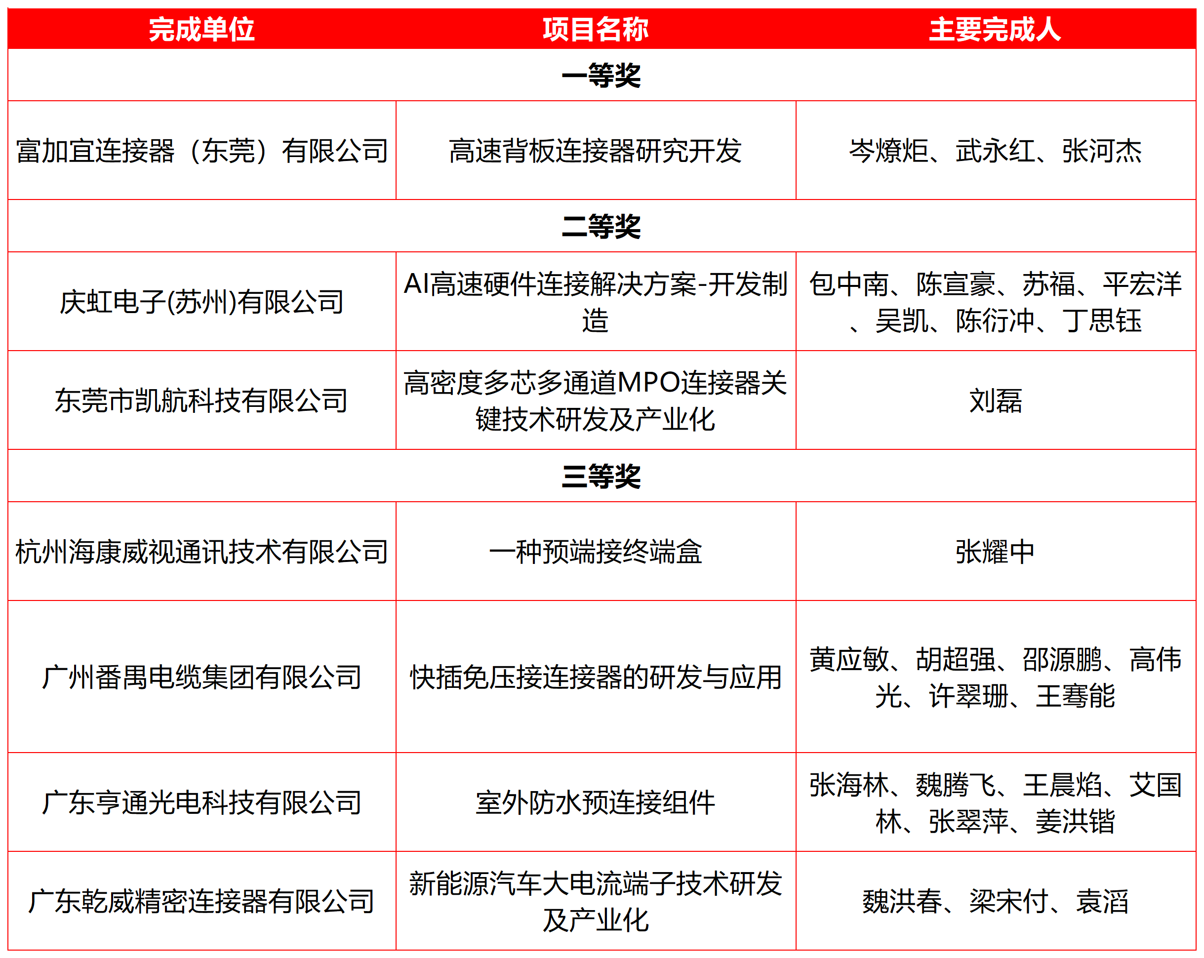 ICC訊 近日,2025年度廣東省連接器行業(yè)科學技術進步獎評選結果正式揭曉。東莞市凱航科技有限公司憑借"高密度多芯多通道MPO連接器關鍵技術研發(fā)及產(chǎn)業(yè)化"項目,從眾多參評企業(yè)中脫穎而出,榮獲科學技術進步獎二等獎。