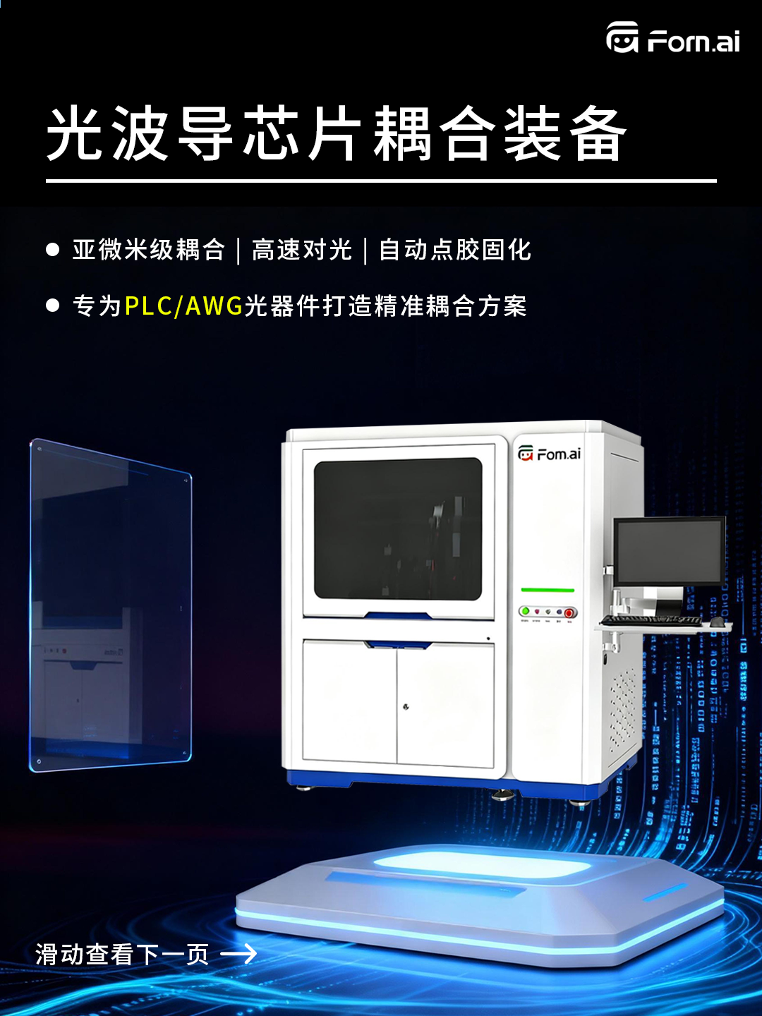 ICC訊 形識智能源于對精密耦合本質(zhì)的深刻洞察,專為PLC/AWG等光通信核心器件打造的高精度、智能化耦合與封裝裝備——光波導芯片耦合裝備。集成雙六軸微米級調(diào)校、動態(tài)視覺閉環(huán)補償與智能優(yōu)化算法,實現(xiàn)高速精準對光與自動點膠固化,顯著提升生產(chǎn)良率與效率。