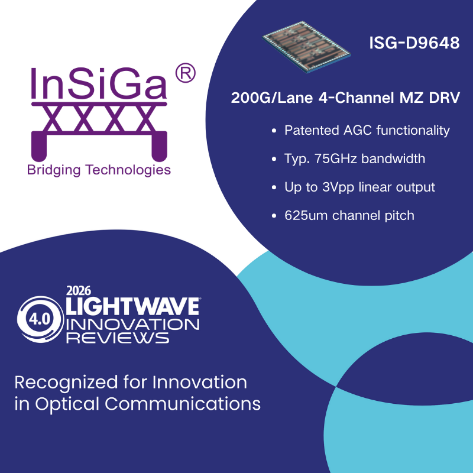 ICC訊 近日,全球光網(wǎng)絡領(lǐng)域知名媒體Lightwave公布2026年度光通信創(chuàng)新大獎結(jié)果。英思嘉半導體榮獲三項通信半導體和電子芯片類創(chuàng)新大獎。Lightwave已連續(xù)多年評選光通信各技術(shù)領(lǐng)域的年度創(chuàng)新獎,旨在表彰光通信領(lǐng)域的頂尖產(chǎn)品和解決方案。在本屆創(chuàng)新大獎評選中,評審團給予了英思嘉三款產(chǎn)品4.0的高分肯定。