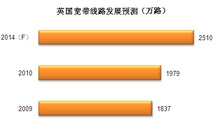 與這些觀點(diǎn)相反的是,F(xiàn)TTx的蓬勃類似于2000年中期的英國(guó)電信DSL寬帶業(yè)務(wù)。英國(guó)寬帶線路的總數(shù)預(yù)計(jì)將增長(zhǎng),從09年底的1837萬(wàn)路增長(zhǎng)到2010年的1979萬(wàn)路,到2014年底將達(dá)到2510萬(wàn)路。