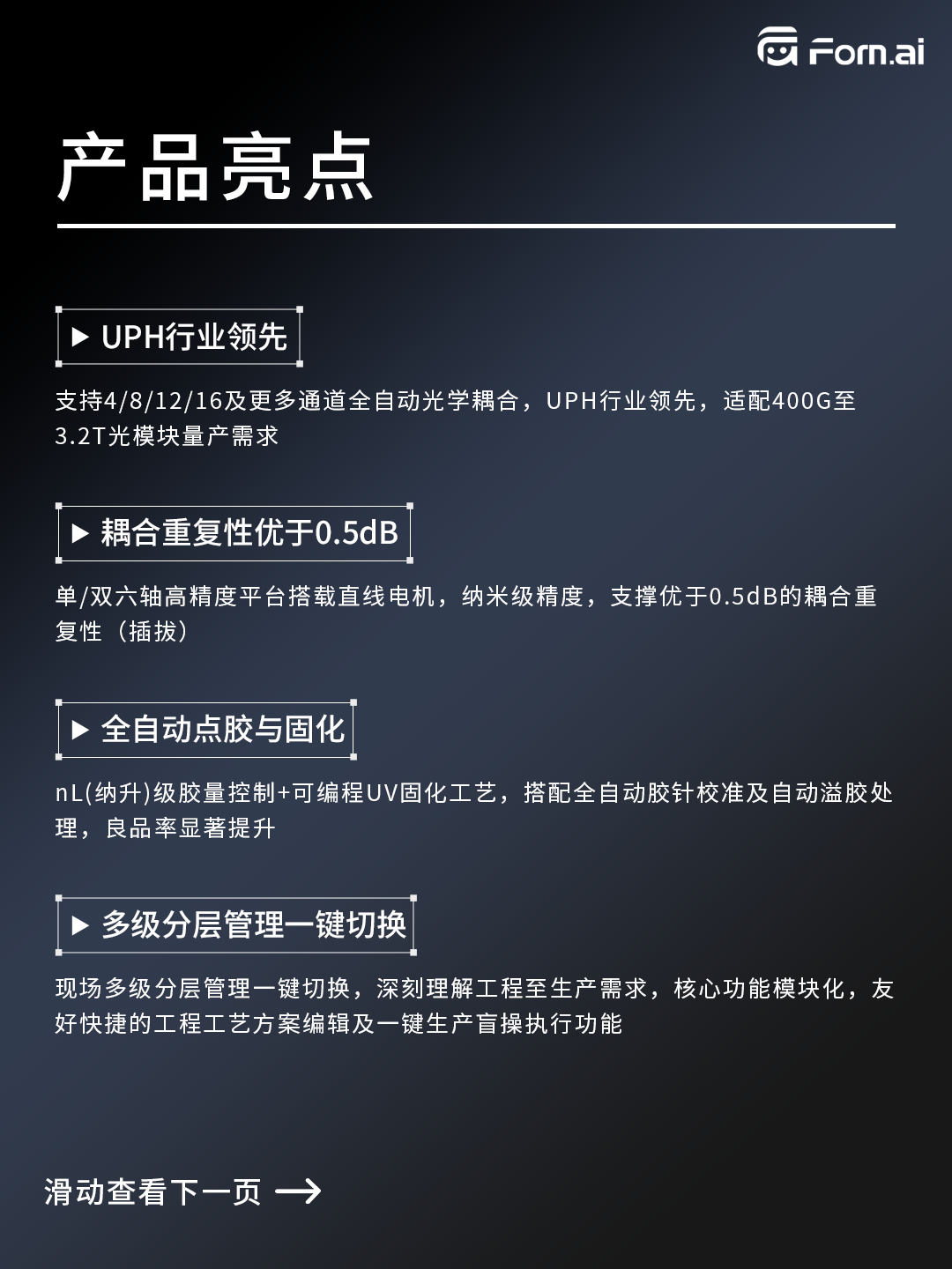 ICC訊 形識(shí)智能自主研發(fā)的硅光 FA 耦合裝備,以 “耦合-點(diǎn)膠-固化” 一體化全自動(dòng)方案,適配400G至3.2T全系列硅光模塊。一鍵操作即可完成高精度流程,不僅兼具超高效率與超穩(wěn)性能,更實(shí)現(xiàn)UPH(單位小時(shí)產(chǎn)能)與良率較傳統(tǒng)方案飆升 40%,真正攻克硅光模塊量產(chǎn)效率難題,為行業(yè)按下量產(chǎn) “加速鍵”!