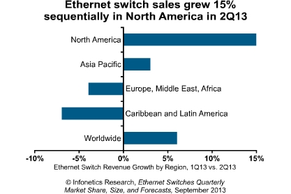 *2013年2季度,全球以太網(wǎng)交換機(jī)市場增長6%,至50億美元;