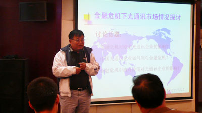 11月28日,每月一期的訊石光通訊聯(lián)誼會于訊石多功能會議廳如期舉行。由于華爾街金融風暴演變而來的全球金融危機正愈演愈烈,連遠在大洋彼岸的中國企業(yè)亦逐漸感受到了寒潮的侵襲。為了分析金融危機下光通訊行業(yè)的形勢與走勢,引領光通訊企業(yè)把握全球經濟現狀與發(fā)展機遇, 訊石信息咨詢(深圳)有限公司在十一月聯(lián)誼會期間推出了“金融風暴專題”,邀請了諸多行業(yè)內及非行業(yè)內人士齊聚訊石多功能會議廳,共同探討光通訊企業(yè)在金融危機下所面臨的機遇與挑戰(zhàn)。以下是關于“金融危機下光通訊市場情況探討”環(huán)節(jié)精彩發(fā)言的一些摘錄。