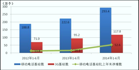 圖11 2012-2014年1-6月移動電話基站數(shù)發(fā)展情況