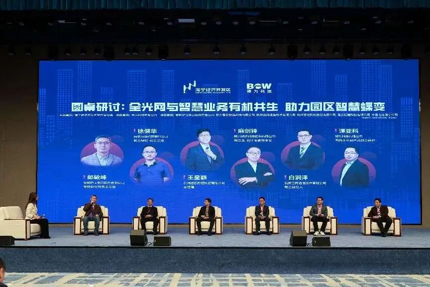 POL(F5G)全光網絡之所以將登上主舞臺,成為主流趨勢,主要原因之一是它強大的鏈接和承載能力,與智慧業(yè)務和產業(yè)發(fā)展深度融合、有機共生,這種共生關系不僅提高了園區(qū)的運營效率和管理水平,也推動了園區(qū)的可持續(xù)創(chuàng)新發(fā)展和智慧蝶變。在圓桌論壇環(huán)節(jié),安邦護衛(wèi)集團股份有限公司安防研究院技術總監(jiān)郎敏峰、南京耘瞳科技有限公司副總經理徐健華、杭州橙芯數鏈科技有限公司總經理王星穎、杭州哲達科技股份有限公司副總裁、浙江省能效專家麻劍鋒、杭州吉網通信技術有限公司聯合創(chuàng)始人白潤澤、博為科技有限公司企業(yè)網產品線總經理譚亞科從安全、業(yè)務布局、節(jié)能、施工建設等方面就POL(F5G)全光網是如何賦能園區(qū)智慧業(yè)務落地這一主題進行了深入探討。