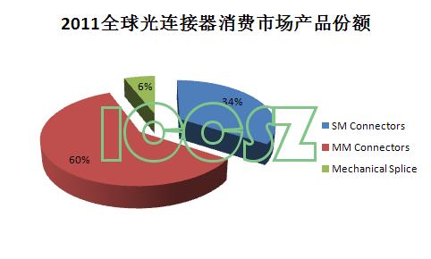 2011年,與多模光纖配套使用的光纖連接器占據(jù)全球光纖連接器消費市場的60%;其次是單模光纖連接器,占比為34%;最后機械接續(xù)頭占6%。機械接續(xù)頭消費市場預(yù)計也將繼續(xù)增長。適用于光纖到戶安裝,基于機械拼接技術(shù)的現(xiàn)場安裝連接器應(yīng)用急劇增長。