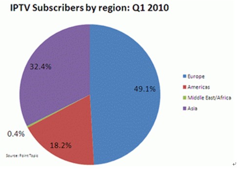 在2010年第一季度,中國電信超越了法國ISP Free,成為擁有最多IPTV用戶的供應(yīng)商。亞洲則有成為全球IPTV用戶最多地區(qū)的潛力。