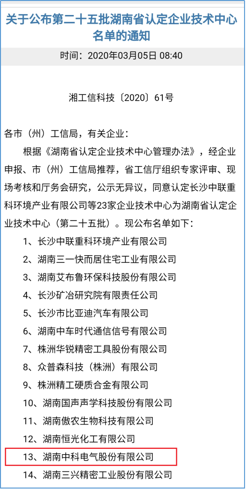 ICCSZ訊 近日,湖南省工業(yè)和信息化廳發(fā)布了第二十五批湖南省認(rèn)定企業(yè)技術(shù)中心名單,湖南中科成功通過了省企業(yè)技術(shù)中心認(rèn)定,再獲省級(jí)以上創(chuàng)新平臺(tái)榮譽(yù),這是公司堅(jiān)持走創(chuàng)新驅(qū)動(dòng)發(fā)展戰(zhàn)略,發(fā)揮技術(shù)創(chuàng)新平臺(tái)支撐作用,全面增強(qiáng)企業(yè)核心競(jìng)爭(zhēng)力的結(jié)果。