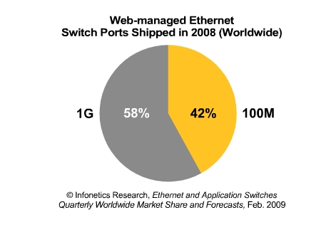 2008年,1G固定配置PoE(power over Ethernet)端口出貨量增長了56.4%。