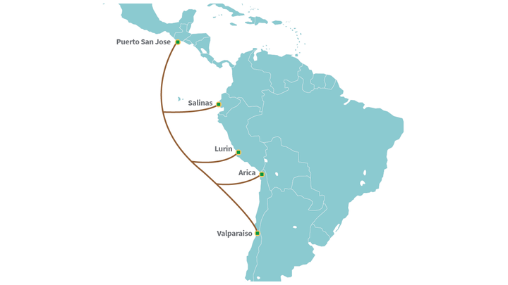 7300公里的六根光纖對(duì)海底光纜估計(jì)初始容量為108 Tbps。危地馬拉的PuertoSanJosé和智利的Valparaíso將成為終點(diǎn)。其他著陸將在厄瓜多爾的薩利納斯;秘魯Lurín和智利阿里卡。兩家公司表示,這五個(gè)登陸站已經(jīng)到位,最初的海底調(diào)查工作已經(jīng)開(kāi)始。
