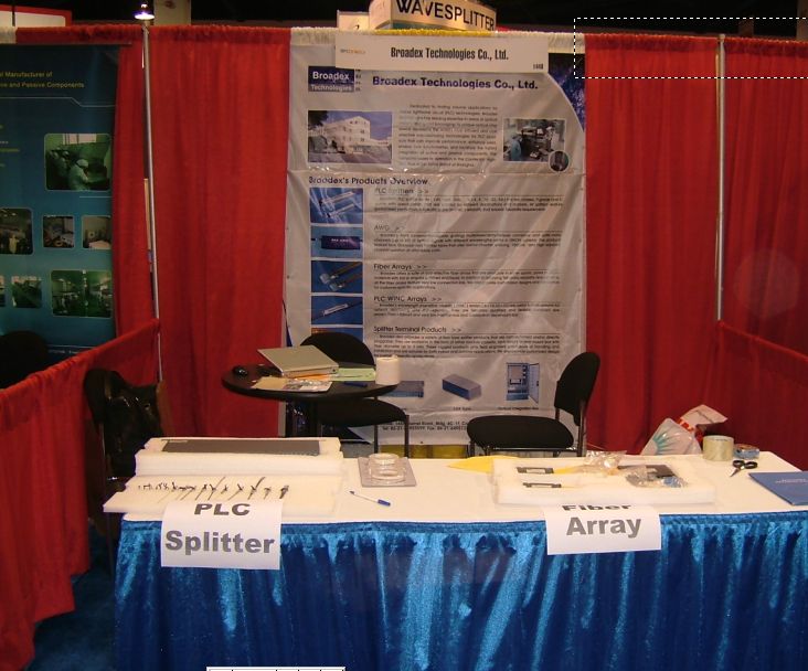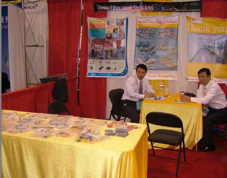 訊石王經(jīng)理與威誼劉博士在展臺(tái)前留影 深圳光纖城通訊有限公司展臺(tái)