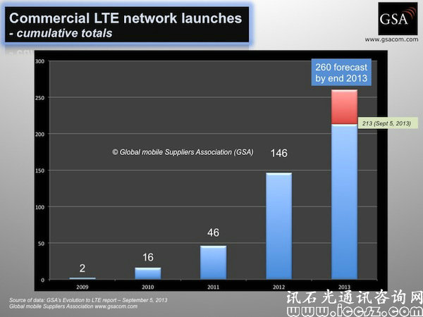 而且,在134個國家有456家運營商在進行LTE投資。其中406家運營商在建LTE網(wǎng)絡(luò),且在81個國家或地區(qū)已經(jīng)推出213個商用網(wǎng)絡(luò),還有50家運營商正在進行各種測試和研究工作。