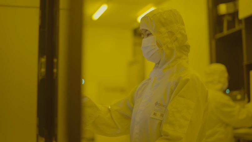 光電子先導(dǎo)院8英寸硅光平臺黃光區(qū),技術(shù)人員正在操作光刻機