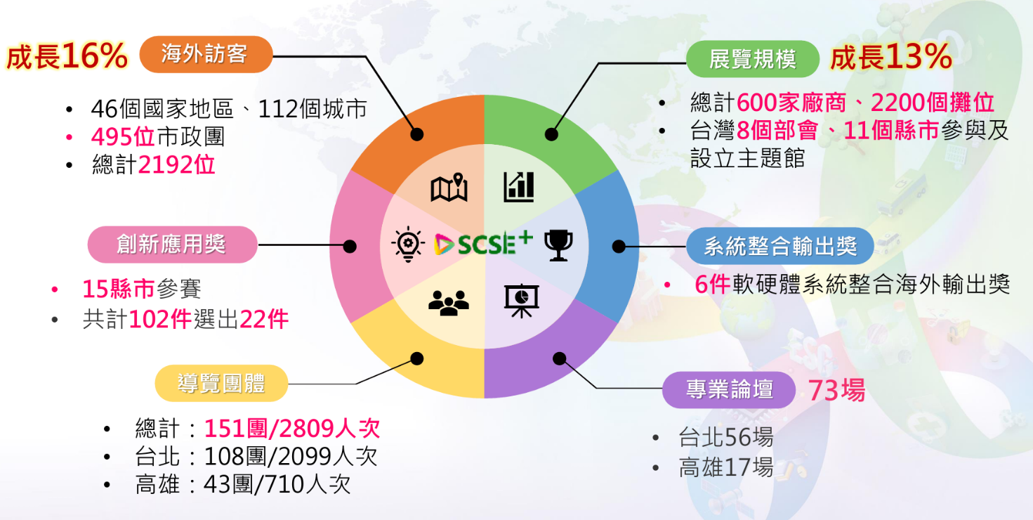 來自46個國家/地區(qū)、112個城市共計2192位海外觀眾報名來臺參加展會活動,其中市政團(tuán)人數(shù)495位,比2023年展會增加16%。