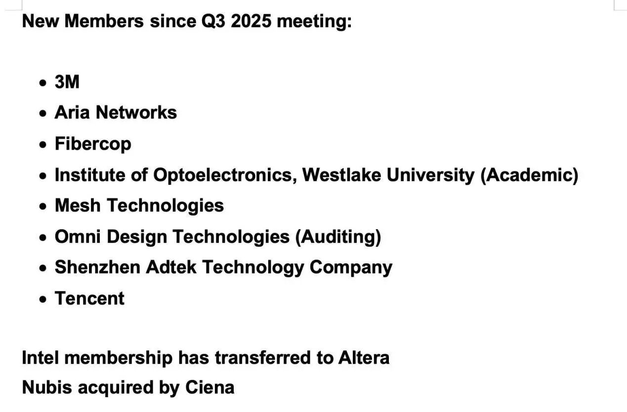 ICC訊 光互連論壇(OIF)是聚焦全球光通信技術(shù)協(xié)作與標(biāo)準(zhǔn)化的非營利組織,自1998年成立以來,已匯聚全球160余家涵蓋組件供應(yīng)商、網(wǎng)絡(luò)運營商、設(shè)備廠商等領(lǐng)域的領(lǐng)先企業(yè)。OIF通過為光通信技術(shù)與標(biāo)準(zhǔn)制定技術(shù)規(guī)范、組織全球互操作性測試以及定期的行業(yè)交流與推廣,加速了800ZR/1600ZR光模塊、通用電接口(CEI)、硅光/共封裝技術(shù)及通用管理接口規(guī)范(CMIS)等關(guān)鍵技術(shù)的標(biāo)準(zhǔn)化與應(yīng)用落地,為全球光網(wǎng)絡(luò)高效、可靠、開放發(fā)展提供重要技術(shù)指引。