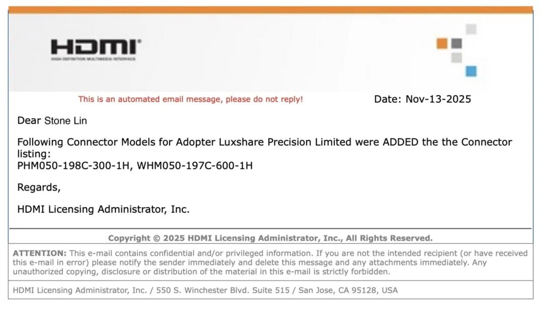 本次認(rèn)證不僅涵蓋產(chǎn)品本身,更包括完整測(cè)試治具,表明立訊在信號(hào)完整性、阻抗控制等關(guān)鍵技術(shù)層面已獲國(guó)際權(quán)威認(rèn)可。公司將成為HDMI 2.2生態(tài)鏈中兼具產(chǎn)品供應(yīng)與測(cè)試方案提供能力的關(guān)鍵合作伙伴。