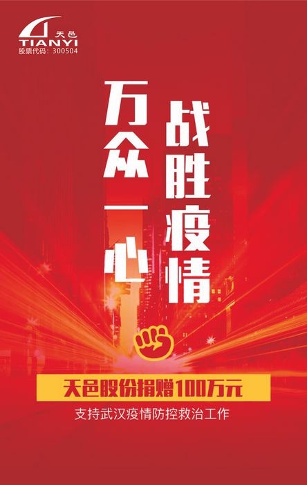 天邑股份表示,面對嚴重疫情,公司及全體員工有責任貢獻力量,積極參與抗擊新型冠狀病毒肺炎。同時,我們也堅信,在以習近平總書記為核心的黨中央堅強領導下,全國人民一定能眾志成城,萬眾一心,奪取抗擊新型肺炎疫情的最終勝利!
