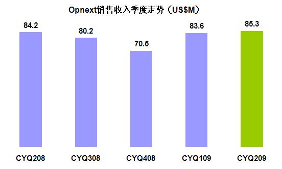 與上季度營業(yè)收入8360萬美元相比,Opnext公司本季度營業(yè)收入增長170萬美元至8530萬美元,環(huán)比增長2%。與去年同期營業(yè)收入8420萬美元相比,營業(yè)收入增長110萬美元,環(huán)比增長約1.3%,其中包括于2009年1月9日收購的StrataLight通信公司323萬美元的營業(yè)收入。