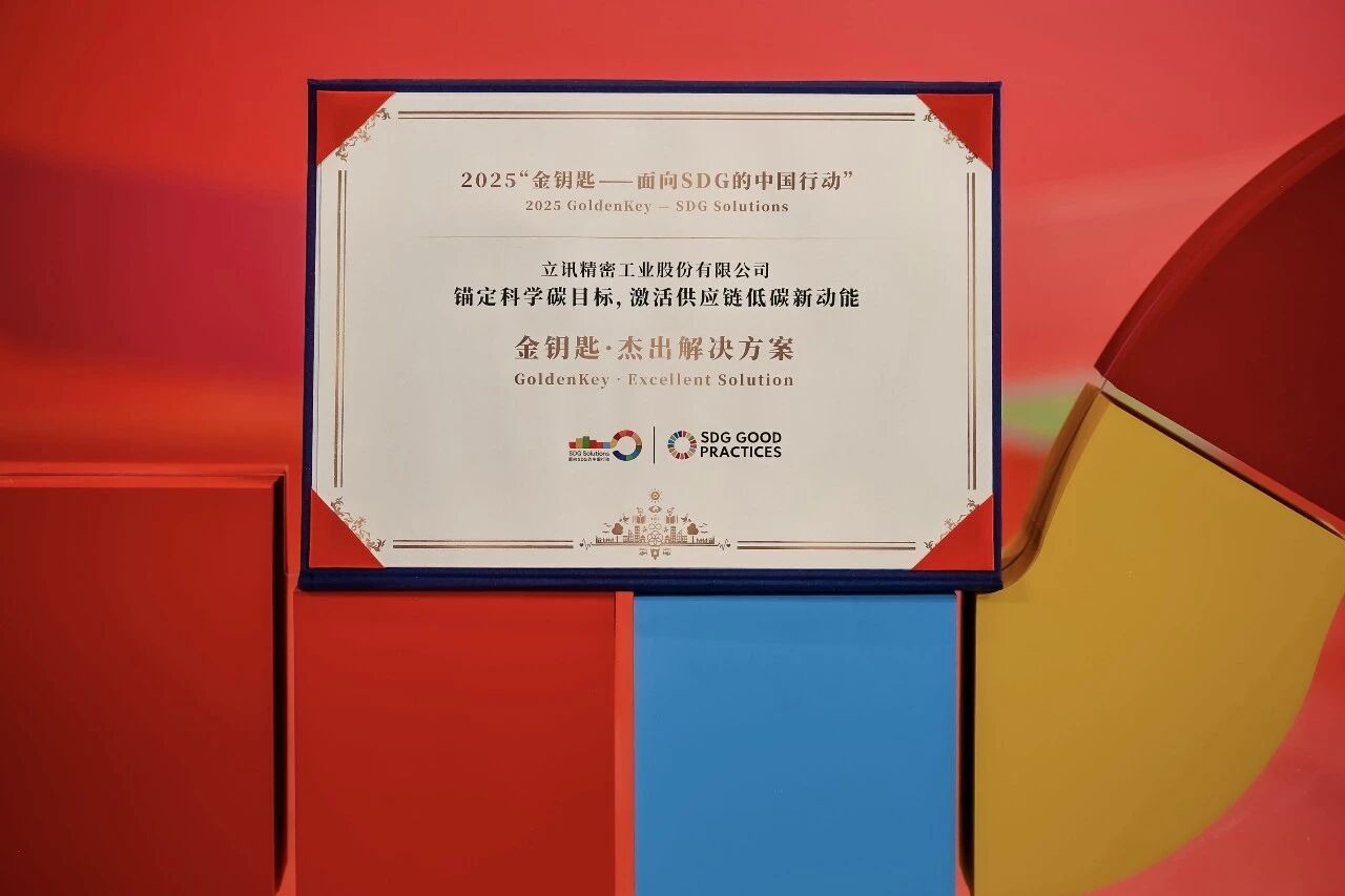 ICC訊 11月28日,“金鑰匙——面向SDG的中國行動”年度盛典在北京圓滿落幕。立訊精密連續(xù)三年在“雙碳先鋒”賽道展現(xiàn)出卓越領導力,申報的“錨定科學碳目標,激活供應鏈低碳新動能”案例,經(jīng)過初評篩選、路演展示等環(huán)節(jié),榮獲2025“金鑰匙·杰出解決方案”。