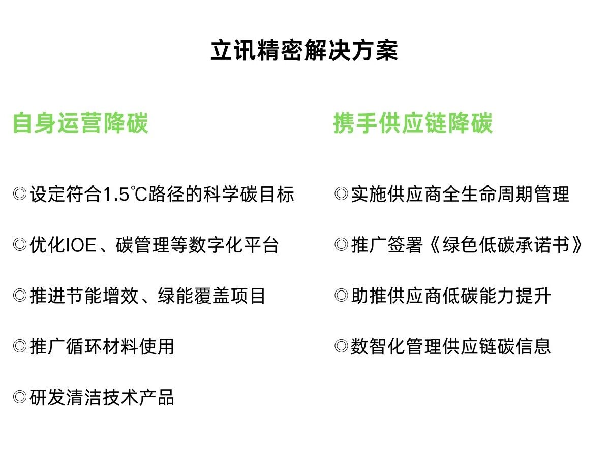 面對日趨嚴格的氣候合規(guī)要求及供應鏈碳核算復雜、轉(zhuǎn)型資源受限與企業(yè)自主轉(zhuǎn)型意識薄弱等挑戰(zhàn),立訊精密在科學碳目標與集團碳中和路線圖指引下,依托數(shù)字化管理工具(綠色供應鏈管理系統(tǒng))與信息披露平臺(IPE平臺),持續(xù)優(yōu)化供應商低碳管理體系,并以自身實踐為供應鏈提供示范范式,共享經(jīng)驗與成果,夯實供應鏈去碳化基礎。