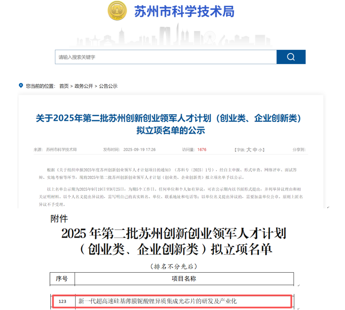 2025年9月19日,第二批蘇州創(chuàng)新創(chuàng)業(yè)領(lǐng)軍人才計(jì)劃擬立項(xiàng)公示,蘇州易纜微成功入選該計(jì)劃“企業(yè)創(chuàng)新類”項(xiàng)目,這也是公司第二次獲此榮譽(yù)。