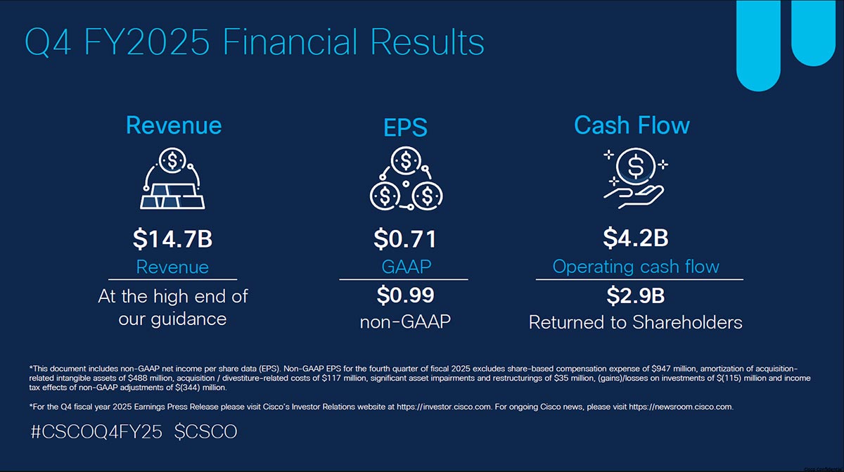 ICC訊 思科日前公布了截至2025年7月26日的2025財年第四財季業(yè)績報告。