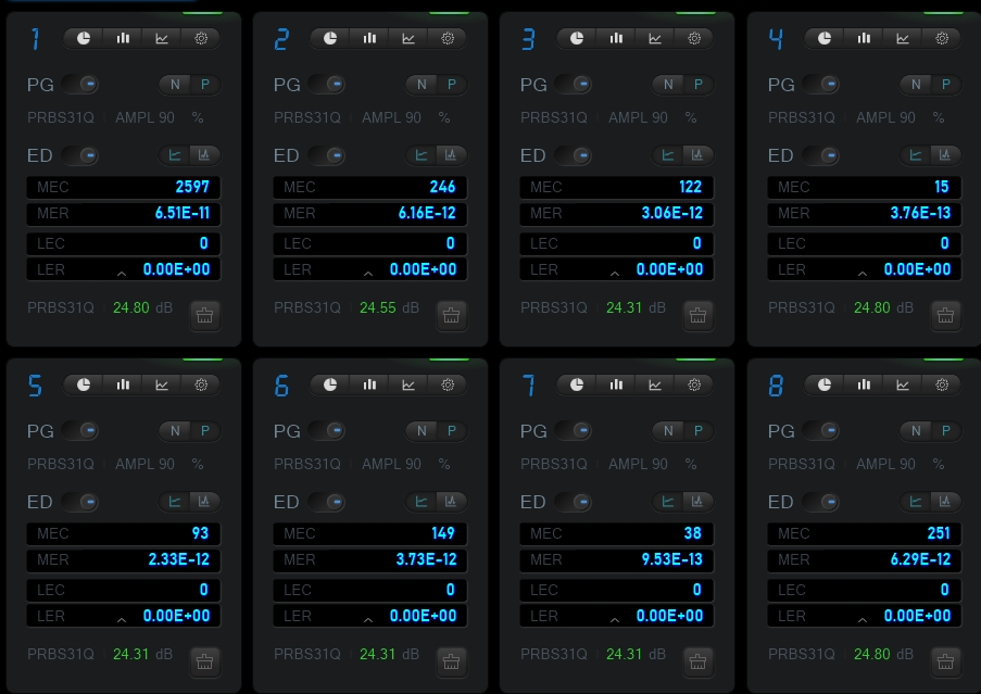 華云光電800G OSFP 2xFR4硅光引擎集成了光電探測器、TIA、MZ調(diào)制器,采用高可靠性CW光源,配合Broadcom內(nèi)置Driver的7nm DSP直驅(qū)芯片,極大簡化了光模塊內(nèi)部工藝設(shè)計和易于批量制造。該產(chǎn)品三溫功耗<16W,發(fā)射消光比ER典型值4dB,TDECQ典型值1.5dB,接收典型誤碼率1E-12,三溫工作溫度環(huán)境下產(chǎn)品傳輸性能穩(wěn)定、關(guān)鍵指標(biāo)優(yōu)良,采用Dual Duplex LC連接器在單模光纖上實現(xiàn)最大2km的傳輸距離。光模塊內(nèi)置信道質(zhì)量監(jiān)測單元,通過DOM數(shù)據(jù)(溫度、光功率)預(yù)測鏈路穩(wěn)定性,支持光鏈路實時信噪比(SNR)檢測,提前告知系統(tǒng)調(diào)整FEC糾錯策略,模塊同時支持鏈路實時誤碼率監(jiān)測上報,系統(tǒng)可以通過查詢光模塊實時了解鏈路運(yùn)行誤碼率情況,實現(xiàn)網(wǎng)絡(luò)問題提前預(yù)警和及時處理,目前產(chǎn)品已在英偉達(dá)交換機(jī)長時間傳纖跑流,傳輸性能穩(wěn)定可靠。